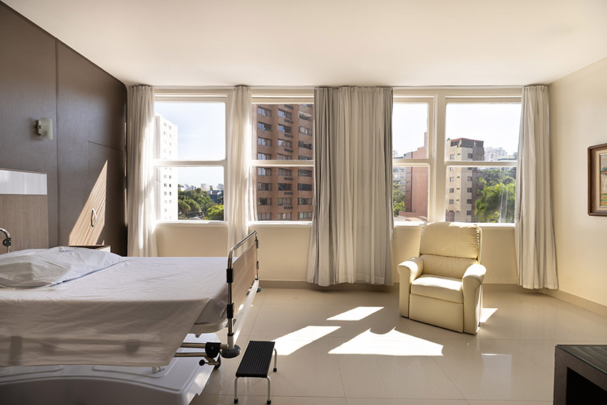 Diversos leitos distribuídos entre enfermarias, quartos e as suítes mais confortáveis de Curitiba.